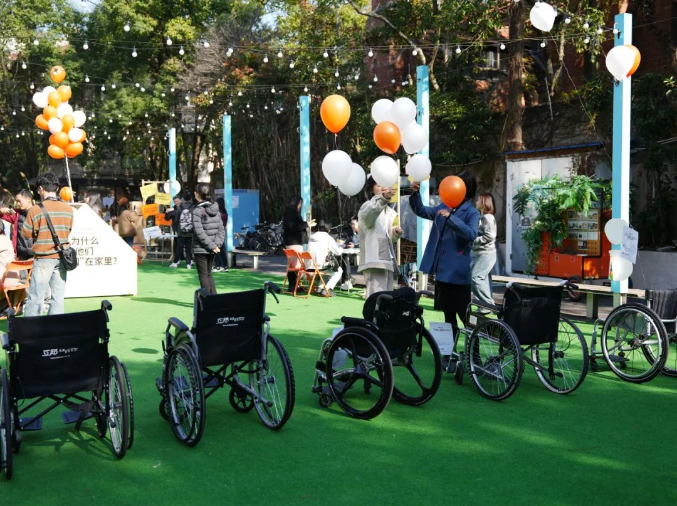 On a Saturday afternoon on November 30th, the public welfare team of Shanghai Hubang Intelligent Rehabilitation Equipment Co., Ltd. (referred to as "Hubang") walked into the accessible interactive market of Xinhua Community in Shanghai with enthusiasm and deep care, which is also the first "accessible" themed interactive art market in Shanghai.